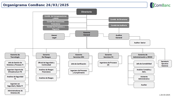 ComBanc está administrada por un Directorio compuesto de nueve miembros estructurados en Presidente, Vicepresidente y siete Directores.