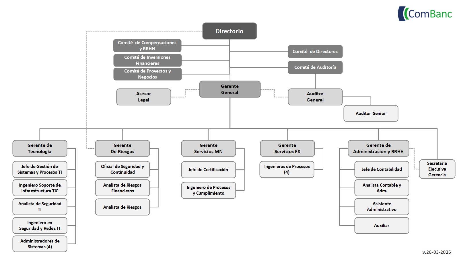 ComBanc está administrada por un Directorio compuesto de nueve miembros estructurados en Presidente, Vicepresidente y siete Directores.